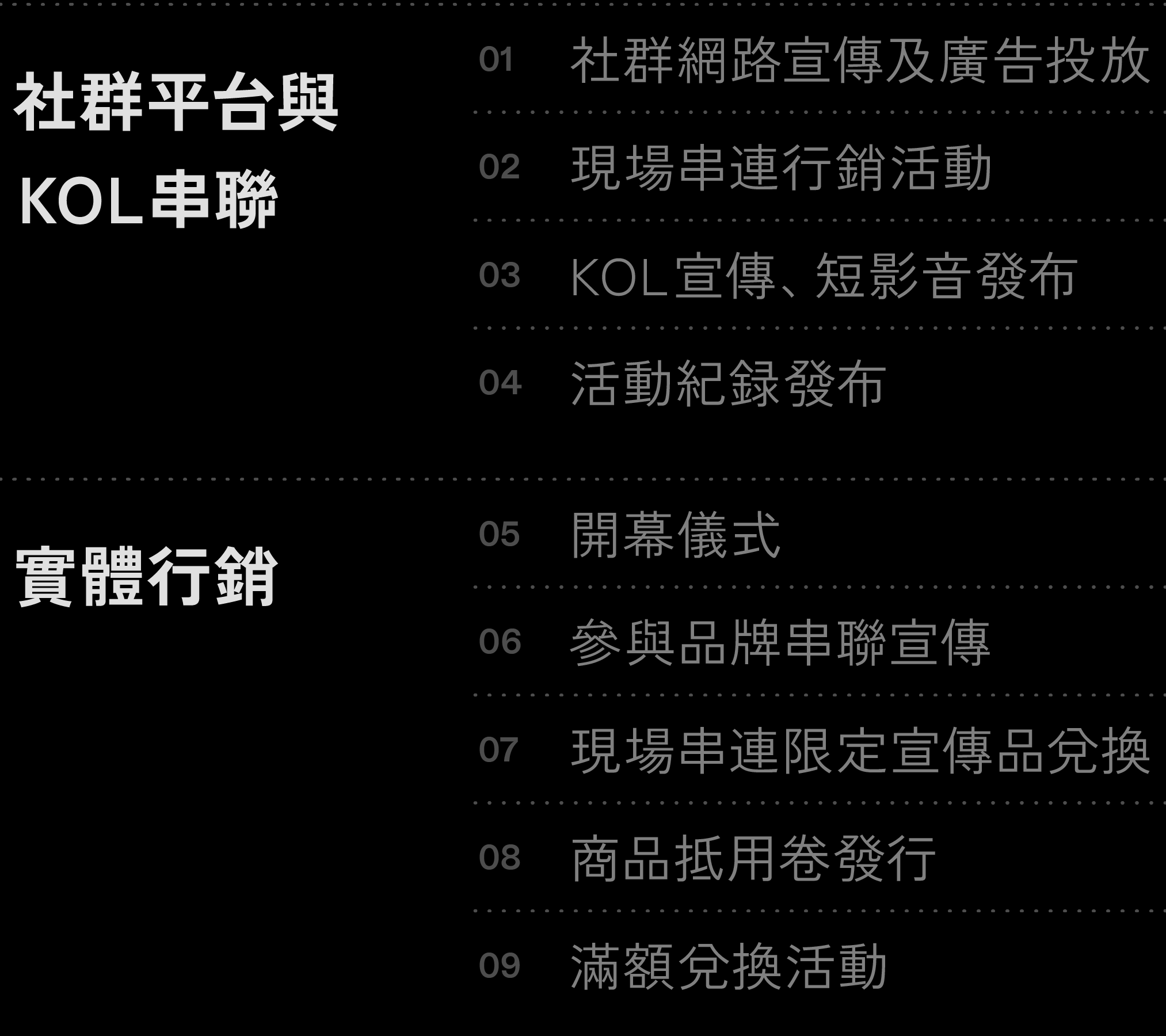 活動行銷的規劃中,大致分成線上社群平台的推廣,以及線下實體活動的串聯行銷;活動執行期間與前後皆持續曝光,維持市集在消費市場的關注度;也連動參與品牌、市集場域方、相關部門甚至社群KOL在各類平台宣傳。